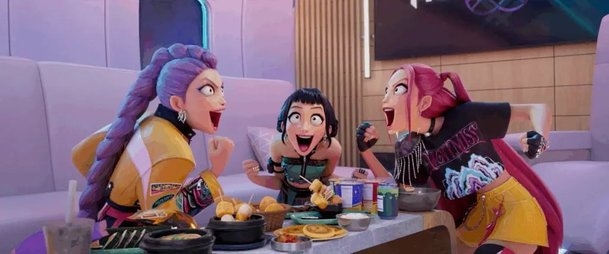 หัวใจสำคัญของเรื่องนี้เลยก็คือฉาก “Spicy Challenge” ที่กลายเป็นภาพจำไปแล้ว ซึ่งมีวงไอดอลสมมติอย่าง Saja Boyz เป็นตัวชูโรง ในโมเมนต์ที่กลายเป็นไวรัลในทันที Baby Saja น้องเล็กของวง คว้าขวดซอสสีแดงเพลิงมากอดไว้เหมือนขวดนม แล้วซู้ดกินอย่างเอร็ดอร่อย! ซึ่งเป็นการคารวะ Challenge “Buldak Challenges” บน YouTube และ TikTok ที่มีอยู่จริง แล้วส่งผลให้แฟนๆ ทั่วโลกเกิดอาการอยากลองตามกันเป็นแถว!