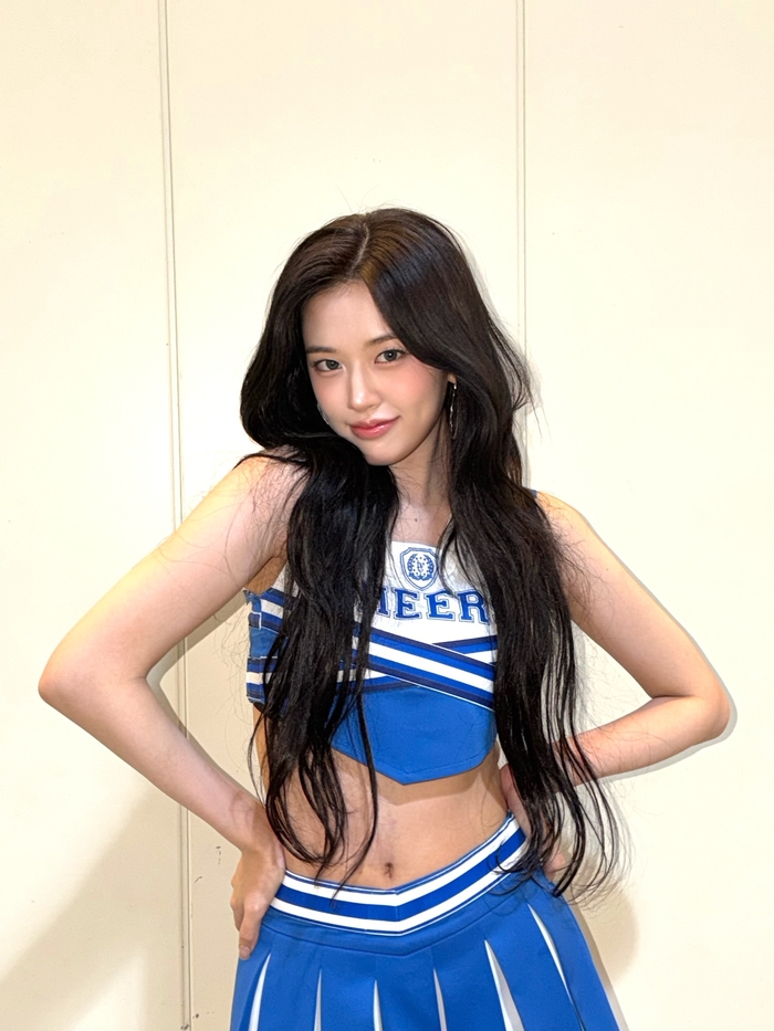 ในภาพที่ปล่อยออกมา An Yujin อวดออร่าสุดพิเศษในชุดเชียร์ลีดเดอร์สี **ฟ้าขาว** ที่มีคำว่า ‘CHEERS.’ ถือพู่สีฟ้าไว้ในมือทั้งสองข้าง รอยยิ้มที่สดใสและท่าทางยกมือขึ้นสูง แสดงออกถึงความสุขและความมีชีวิตชีวา แฟนๆ ต่างก็หลงรักลักยิ้มอันเป็นเอกลักษณ์ของเธอ ที่เพิ่มความหวานให้กับลุคที่ทรงพลัง